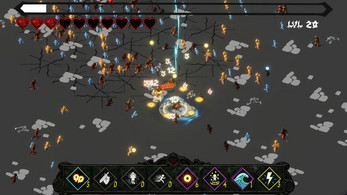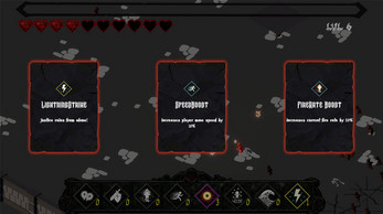 >Card-based level-up system offering randomized abilities and modifiers